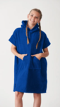 100% polyester. Polyester microfibre. Poncho avec capuche intégrée. Poche kangourou avec à l'intérieur une poche pour le téléphone uniquement pour les tailles 6/9 et 10/13 ans. Fentes latérales. Lavable à 40°.